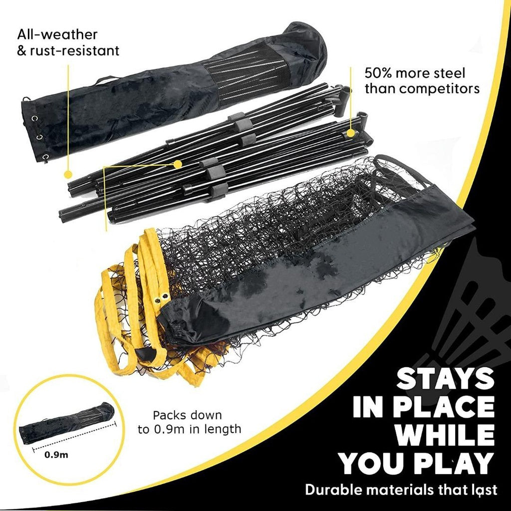 Badminton Pickleball Net - height adjustable portable net for junior tennis, kids volleyball & soccer, badminton racket