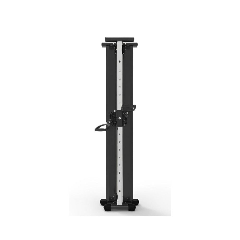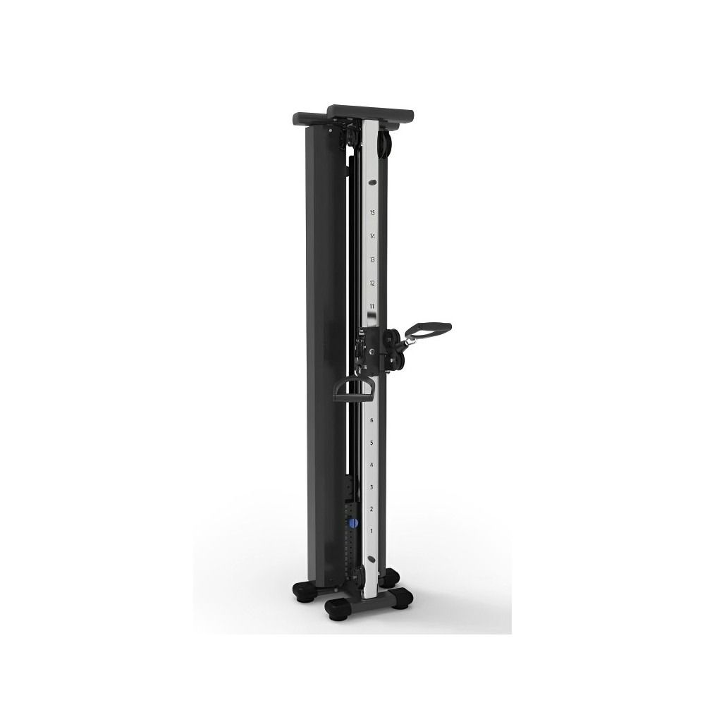 Deluxe space saver cable pull down machine with double pulley handles and it adjust from top to bottom to do various exercises. Space saving design mounts to the wall. 70kg weight stack. Size: 500*500*2200 L*B*H Exercises: -Biceps -Triceps -Lat pull down -Bent rows -Shugs -Cable crossover -Leg curls -Leg pulls -Lat pulls