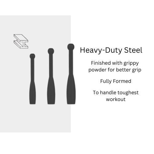 ✅ [HEAVY-DUTY STEEL] Each club is made from heavy-duty steel with a grippy powder coated finish. Each handle includes a rounded end to provide a safe grip. These weights are perfect for new and intermediate athletes and can brave all the fitness elements!