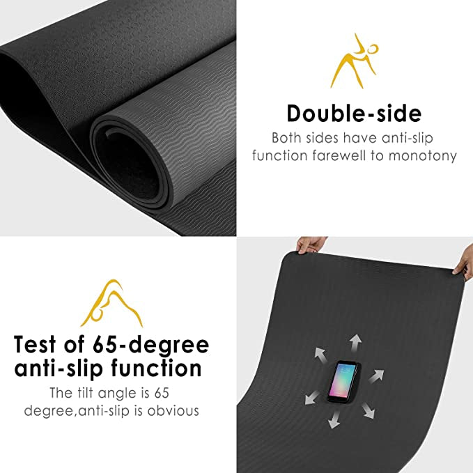 卓越的缓冲性能:6毫米的厚度提供了充足的缓冲,可以保护您的关节,并为您的瑜伽练习提供舒适的表面。