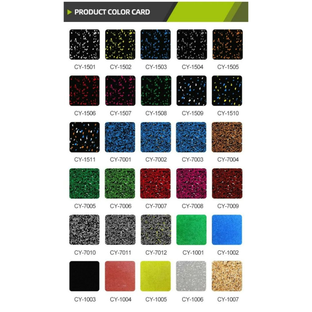 4. Clean and Hygienic: Our gym flooring is designed with cleanliness in mind. It is crafted using environment-friendly SBR rubber granules, EPDM rubber granules, and environment-friendly glue. The surface is easy to clean and maintain, ensuring a hygienic workout environment. You can easily wipe away any dirt or sweat, keeping the flooring looking fresh and ready for your next session.