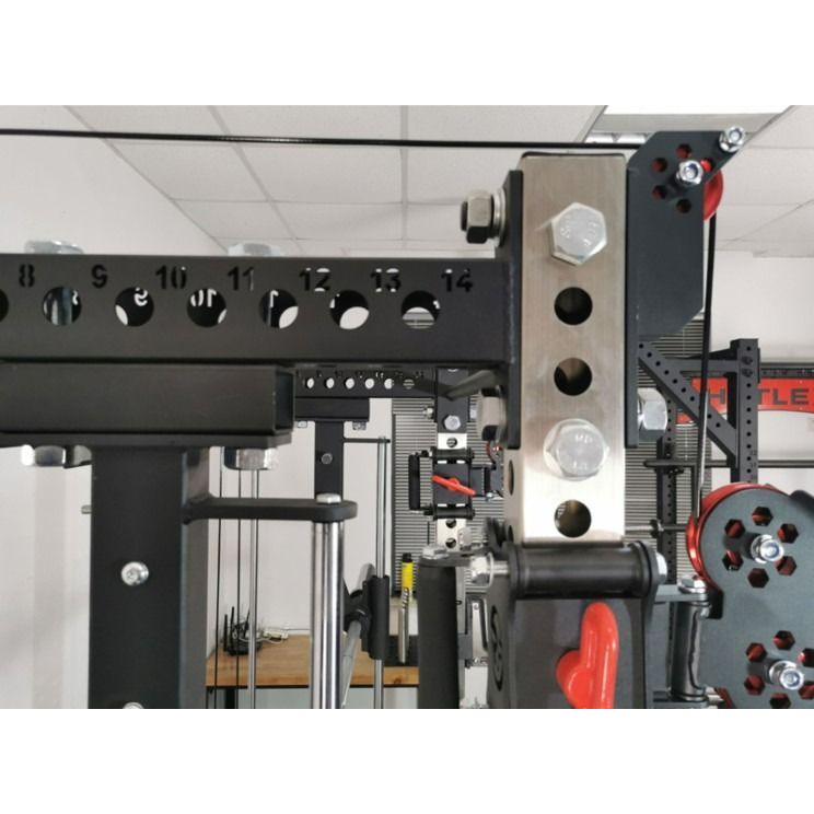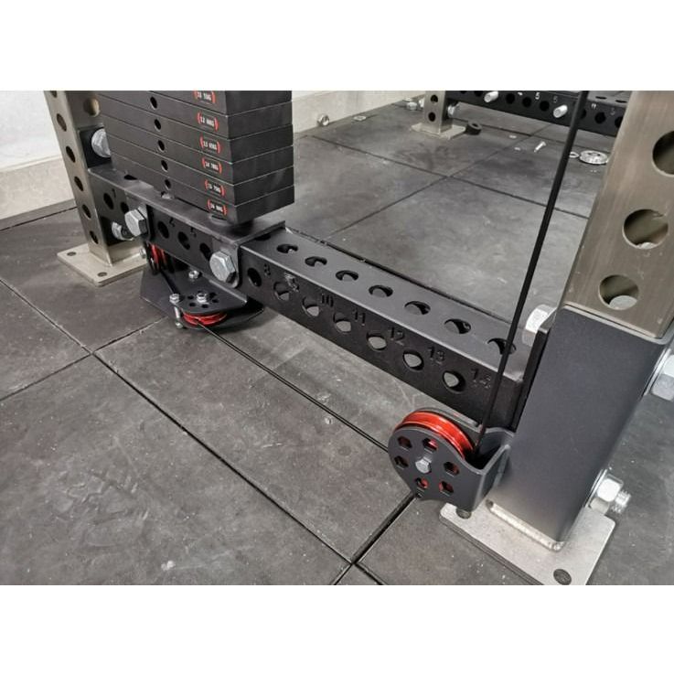 High-quality cables made from galvanized wire with a raw steel core and strong alloy pulleys. The front pulleys have a 180-degree swivel for versatility working outside the rack. Selector Stack weight 80kg each.