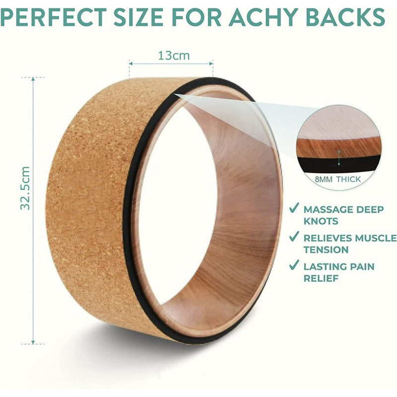 STRENGTHEN SPINE MUSCLES & IMPROVE POSTURE: Our yoga back wheel strengthens and massages back muscles along the spine. It's often used as a back roller for back pain therapy. The massage wheel works by reducing back strain and helps realign the natural curvature of your spine during use.